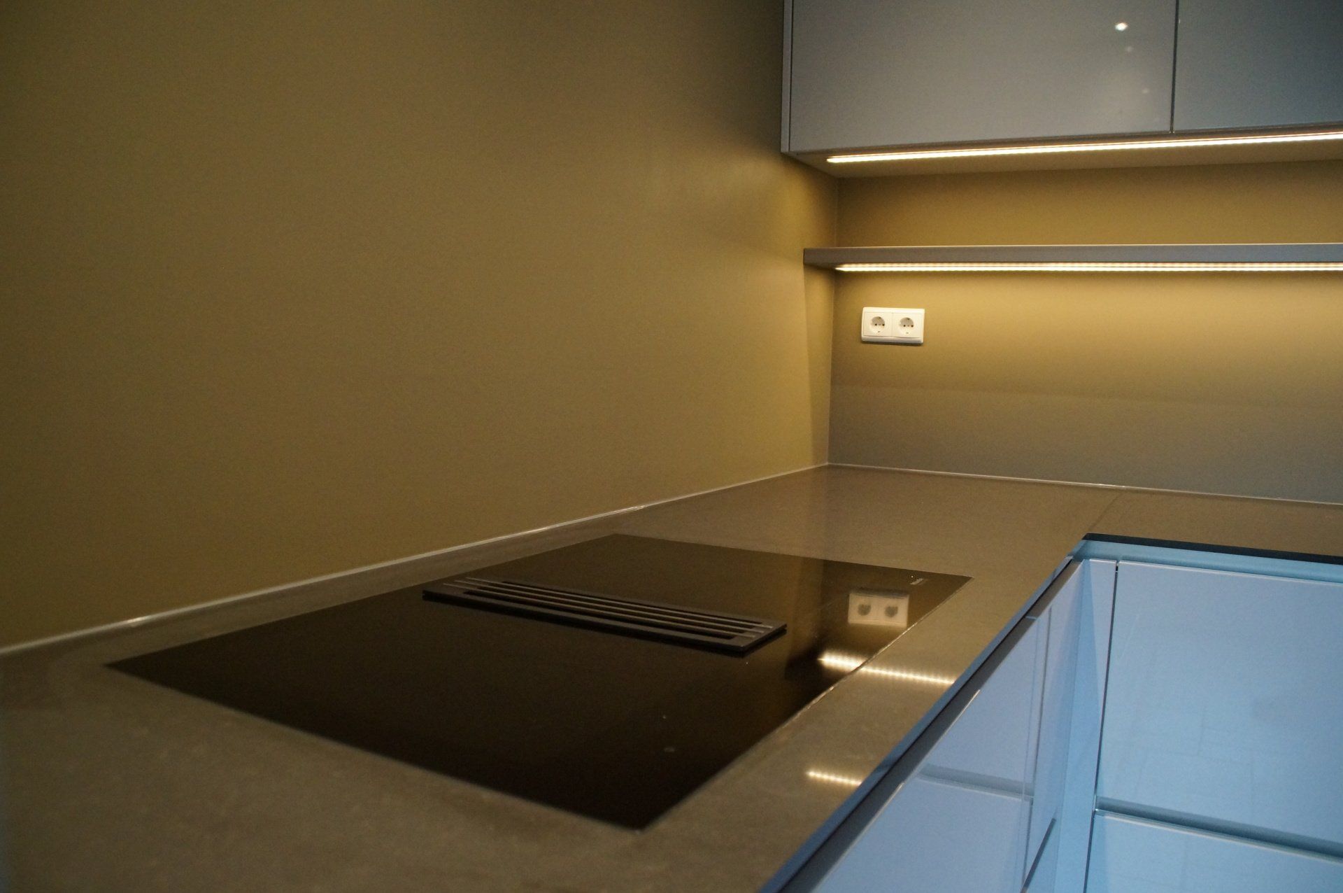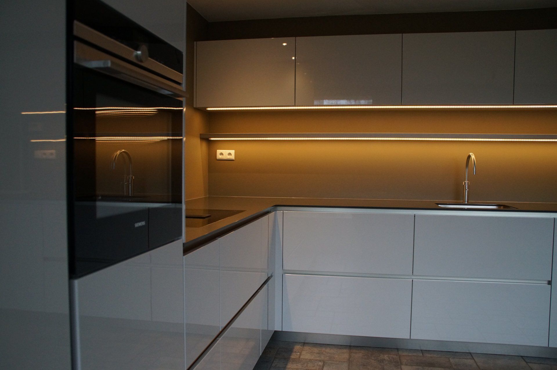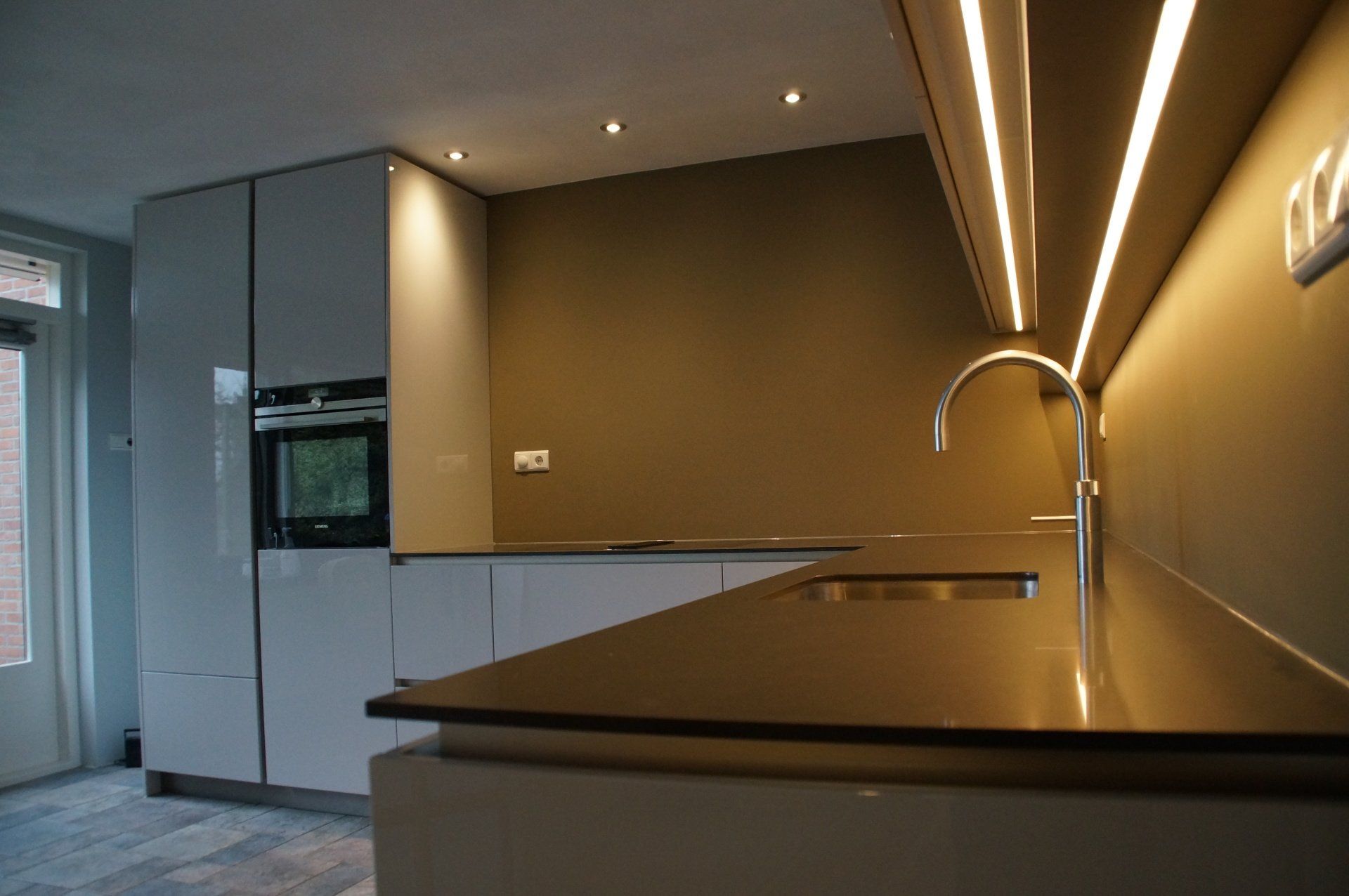 Daarnaast is de keuken voorzien van lichtlijsten en spotjes boven het werkvlak.